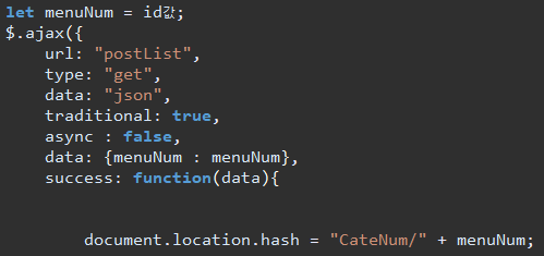 저는 카테고리 선택 시 화면의 일부분만 바뀌도록 ajax를 사용하였는데요. 그러다 보니 URL변경이 없어서 location.hash를 사용한 상황입니다.
