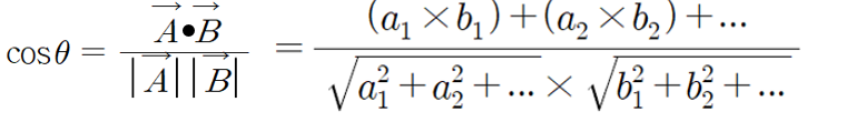 두 문장 벡터의 사이 각(θ)에 대한 코사인 값을 나타냅니다.